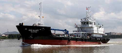 Constructed under survey to the China Classification Society, the 'Ken Glory' is double-hulled and features notations for coastal area operations, as well as 30 nautical mile voyages or plying operations in and around the Port of Singapore. This notation permits the vessel to operate around the Outer Port Limit of Singaporean waters.