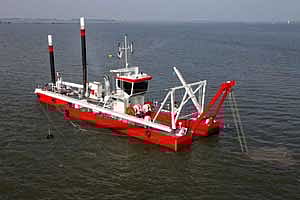 The efficient use of power is ensured by applying a single, low-emission, diesel engine for all energy consumers on board, such as the dredge pump, hydraulic installation and 230V board net.
