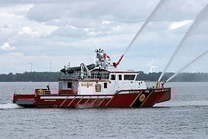 Fitted with four Iveco C13 engines driving Hamilton 364 water-jets, 'John S Damrell' can hit speeds of 36 knots. Its pumps can produce over 45,000 litres/minute at 150psi. Detection equipment has been installed to detect interior and exterior CBRN agents, with a breathable air system fitted on the bridge.