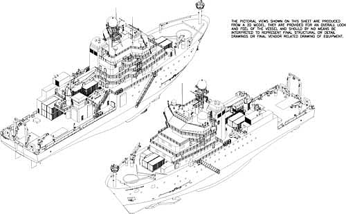 Measuring 94 metres in length, with a beam of 18.5 metres and a draught of 5.7 metres, the vessel was designed by Canadian naval architecture firm Robert Allan Ltd in collaboration with United States-based research institute Alion Science and Technology of Alexandria in Virginia.