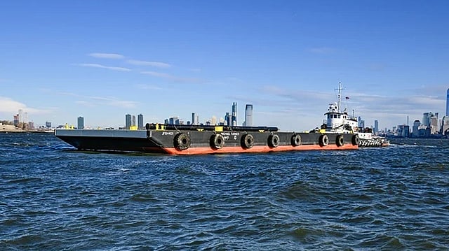Classed and load-lined for ocean service, the barge boasts an interior that is completely painted to prevent saltwater corrosion.