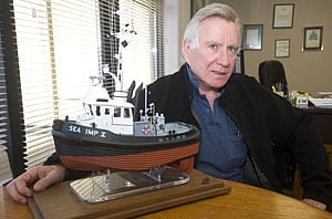 Not one to stand still, Mr Catherwood worked extra shifts and made enough money to qualify for a bank loan and built his first steel boat, the 'Sea Imp III' in 1980, which was just in time to see the sky rocketing interest rates of the early 1980s. The challenges of high interest were an important business lesson. The solution was more hard work and an expansion of his towing territory to include yarding logs up from the mouth of the river and even towing barge loads of cedar shake bolts from up coast logging operations.