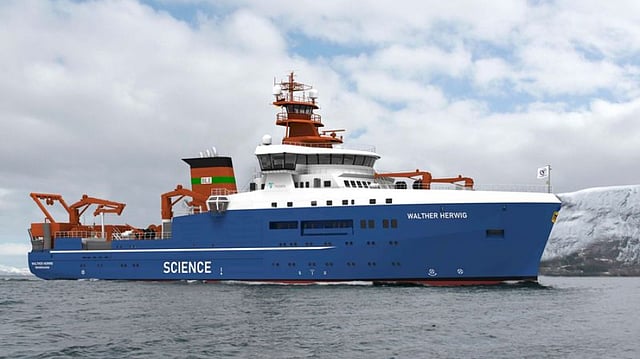 Upon completion, the fourth Walther Herwig will boast 10 laboratories, work cranes, equipment for both demersal and pelagic trawling, selective catalytic reduction systems, and a methanol-ready propulsion system. The spacious open deck will be allotted for the transport of additional scientific equipment and ISO containers.