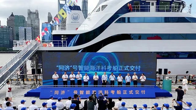 China's state-owned Huangpu Wenchong Shipbuilding handed over a new ocean research vessel to Tongji University in a ceremony on Sunday, July 13.