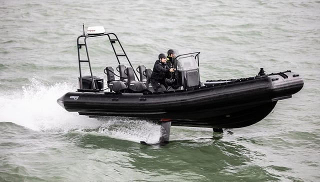The foils on each boat in the new 7.65- by 3.04-metre series are retractable, allowing these to be stowed when not in use such as during low-speed sailings.