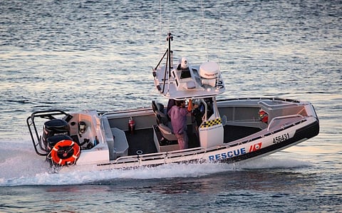 The all-weather RIB is powered by two Suzuki outboards and can sail for up to 145 nautical miles. The onboard electronics include a Raymarine radar and a Teledyne FLIR rotating camera.