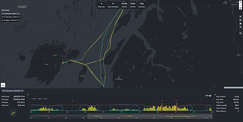 Meanwhile, the crew indicate their level of discomfort by pressing the buttons that the Hefring team made for them, the data from which is recorded by the system and presented in the admin console as red markers on the interfaces map and a bar chart above the heavy impacts.