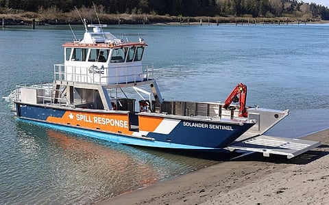 Solander Sentinel was designed and built by family-owned William E. Munson Company of Burlington, Washington. The newbuild was delivered to WCMRC in June of this year while its three sister vessels are in various stages of construction. The landing craft operates primarily out of the WCMRC base at Port Alberni on Vancouver Island alongside other response vessels.