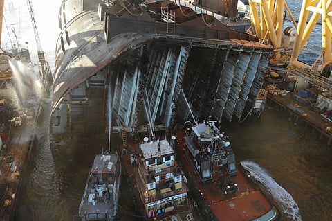Personnel have since been deployed aboard the vessel to monitor for potential fires as well as debris and oil spills while the 150-yard (137-metre) safety zone around the vessel has been increased to 200 yards (182 metres) for recreational vessels.