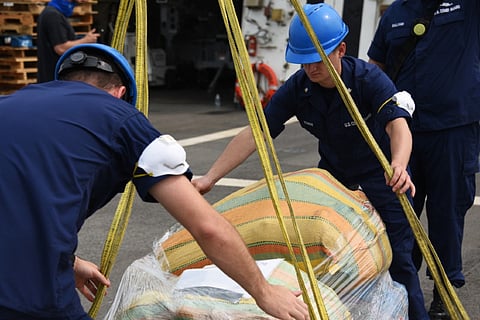 The crew of the US Coast Guard Legend-class national security cutter Bertholf offloaded more than 11,000 kilograms of seized cocaine and marijuana in San Diego on Thursday, September 10.