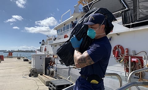 The crew of the US Coast Guard fast response cutter Donald Horsley offloaded approximately 150 kilograms of seized cocaine and transferred custody of three suspected smugglers to federal law enforcement authorities at Sector San Juan, Puerto Rico, on Saturday, June 13.