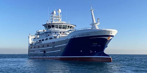 The 67-metre newbuild, which is also named Østerfjord, is equipped with a hybrid propulsion system that can operate on diesel mechanical, diesel-electric, or pure electric mode. The onboard facilities include a moonpool, a fish processing plant, and accommodations spaces for 23 personnel.