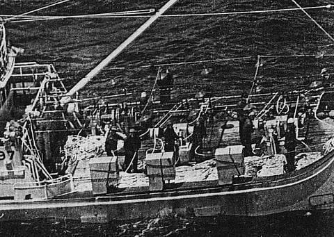 One of two illegal Japanese precious coral draggers is shown inside the US 200-mile Fisheries Zone near Kure Island, Hawaii.