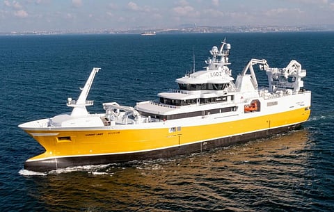 The second Teige-owned vessel to bear the name Sunny Lady has an LOA of 86.5 metres, a beam of 17.8 metres, a draught of eight metres, and a gross tonnage of 4,800. The propulsion system consists of a 5,500kW main engine designed to run primarily on LNG with diesel serving as a backup and a Corvus Orca Energy 1,017kWh battery to be used for peak shaving operations and regenerating energy during trawling and while at berth.