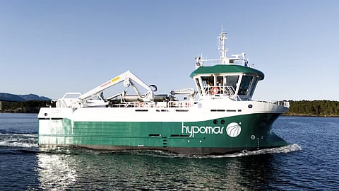 The first vessel to join the Hypomar fleet measures 26.78 by 10.4 metres (87.86 by 34.1 feet) and is equipped with onboard production systems and a hybrid diesel-electric propulsion system that includes a Scana DI16 90M main engine, a John Deere 6068AFM85 auxiliary engine, a Nogva Heimdal propeller, Veth side thrusters, and a battery pack with an output of 1,000 kWh. Installation of the battery pack was made possible with support from Norwegian state-owned financing agency Enova.