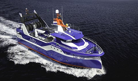 The 32-metre vessel with 9.6-metre beam has been designed by naval architects Vripack in line with Ekofish's dedication to sustainable fishing methods.