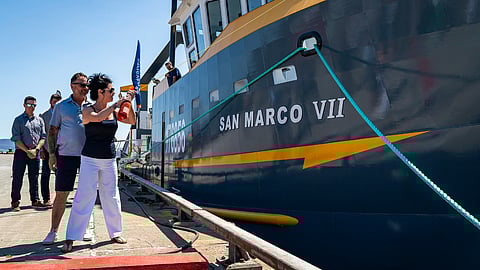 Pêcheries Michel Turbide, a fishing company owned by boat skipper Marco Turbide of Quebec, has formally named a new combination trawling and crab fishing vessel built by Canadian shipyard Chantier Naval Forillon. The Navanex-designed San Marco VII will be operated primarily in the Gulf of Saint Lawrence, where it will fish for redfish and snow crab depending on the season.