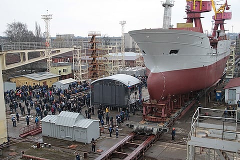 The hull of the third vessel, Udarnik, is under construction.
