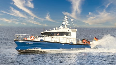 Designed and built by Tamsen Maritim of Rostock, the all-aluminium vessel has been named Goldbutt after the alternate German name for P. platessa, or European plaice, which is abundant in Northern German waters.