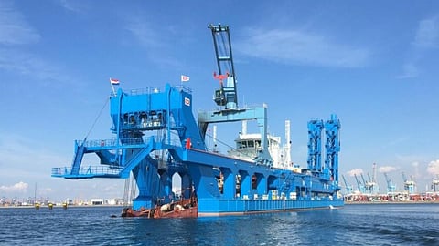 The new dredger measures 147 by 23 metres and is capable of dredging at depths of 35 metres. It will soon be transported to Egypt, where final commissioning will take place.