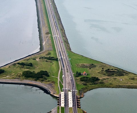 The Afsluitdijk protects large parts of the Netherlands against flooding from the Wadden Sea and the IJsselmeer since 1932.