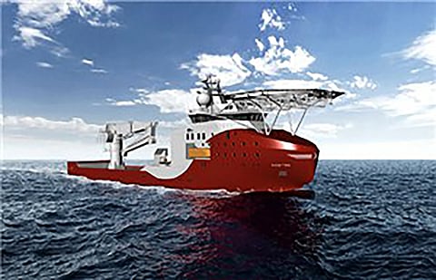 The 121-metre-long vessel has a deck space of 1350 square metres and is equipped with a 250-tonne offshore crane and two heavy-duty remotely operated underwater vehicle (ROVs).