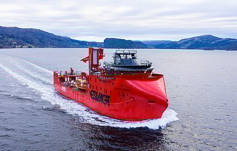 Named after the 350-kilometre Scheldt River that winds through Western Europe towards the North Sea, the Bureau Veritas-classed Esvagt Schelde has an LOA of 70.5 metres, a beam of 16.6 metres, a draught of 5.6 metres, and a summer deadweight of 1,960 tonnes.