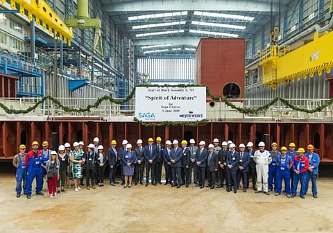 Meyer Werft laid the keel for Spirit of Adventure, the second new vessel ordered by Britain's Saga Cruises, in a ceremony in Papenburg on Monday, June 3.
