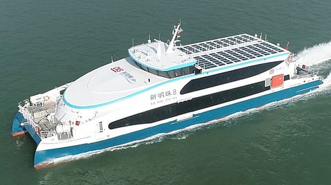 Hong Kong ferry operator Sun Ferry has taken delivery of the first vessel in a new series of six fast catamaran ferries built by China's AFAI Southern Shipyard. Xin Ming Zhu VIII (新明珠8; "New Pearl 8") is now in operation on the Central Ferry Pier to Mui Wo and Cheung Chau commuter routes in Hong Kong.