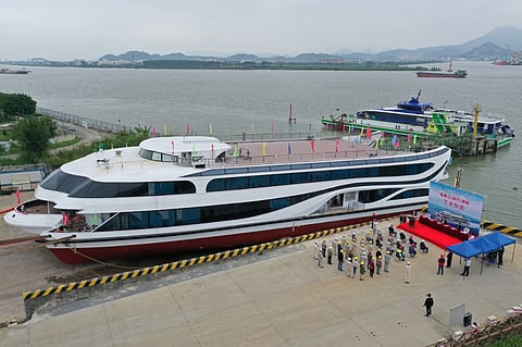 Once completed, the 54- by 15-metre, 556-passenger Meng Hang will be the largest sightseeing boat to operate in the Qiantang River in eastern China.