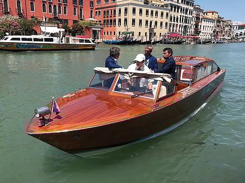 The upgraded boat was officially introduced with a test tour on the Venice Lagoon with the presence of the mayor together with Ugo Pavesi of Transfluid and Filippo Brunero of Bimotor.