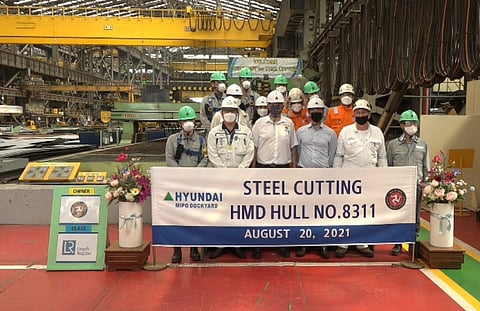 South Korean shipbuilder Hyundai Mipo Dockyard has cut the first steel for the Isle of Man Steam Packet Company's newest flagship ferry.
