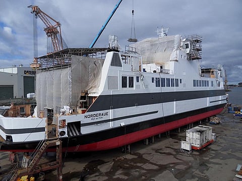 Built at Neptun Werft in Warnemünde to Blauer Engel eco-friendly specifications, Norderaue will be WDR's third double-ended ferry.