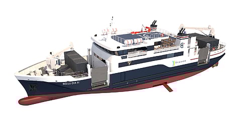 The vessel will also be equipped with shore charging equipment, two 13-tonne cranes for alongside loading and unloading, two flap rudders, two hydraulic thrusters, and two stabilisers.