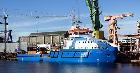 Zodiak II is the first in a series of two vessels designed to perform hydrographic measurements, towing, oil spill response, icebreaking, buoy maintenance, search and rescue (SAR), firefighting, and limited cargo and personnel transport.