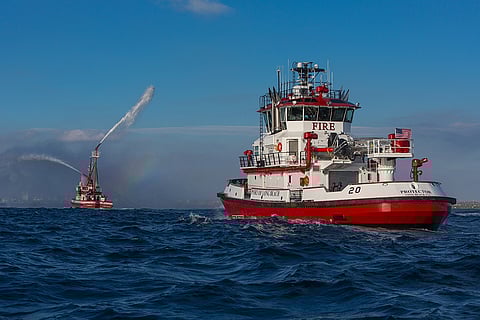 "These fireboats are technological marvels, able to turn on a dime, move sideways and throw water or foam anywhere on the world's largest container ships and oil tankers," said Mr Cordero.