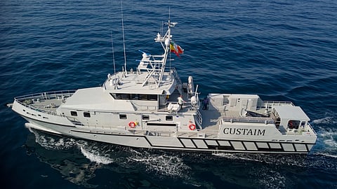 The vessel is fitted with a stern ramp for launch and recovery of a 6.25-metre rigid inflatable boat, while an aft access door facilitates personnel transfer during interceptions. The stern also features a dedicated landing platform for use by unmanned aerial vehicles that would help expand the vessel's surveillance coverage.