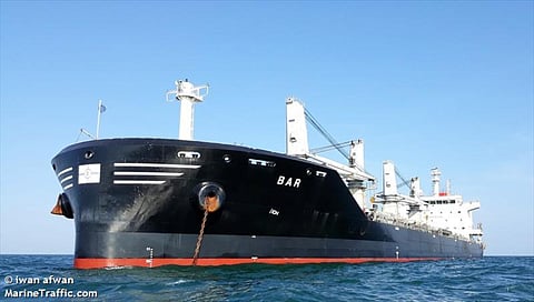 The barge was ferrying the rice to the Montenegro-flagged bulk carrier Bar (pictured), which was supposed to transport the cargo to Senegal.