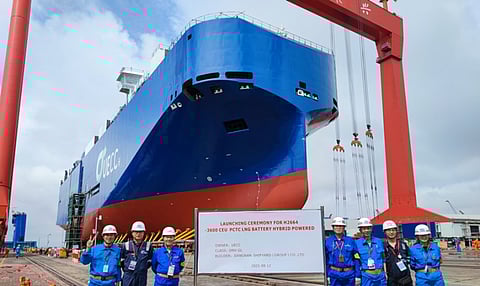 A new LNG battery hybrid pure car and truck carrier (PCTC) being built for United European Car Carriers (UECC) was launched in China on Monday, August 16.