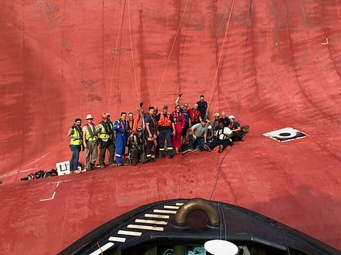 Salvage crews were transported by the coast guard to assess the hull of the 199-metre Golden Ray at 08:22 local time on Monday, September 9. The vessel had caught fire and capsized one day prior, though 20 of the crew were safely rescued.