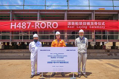 China's Yantai CIMC Raffles Shipyard laid the keel for a new freight-only Ro-Ro vessel on Monday, June 22.