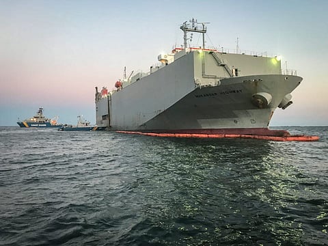 Grounded K Line ship Makassary Highway has released approximately 7,000 litres of oil into Swedish waters, after heavy weather caused the ship to dislodge, allowing oil to leak from the vessel's tanks.