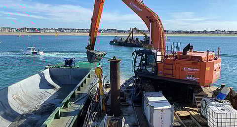 Baars extracted approximately 60,000 cubic metres of sand from the harbour while 20,000 cubic metres of material was used to lay the foundations of the future breakwater. For the project, Baars utilised one of its four 160-cubic-metre split hopper barges and dredging equipment from Merceron.