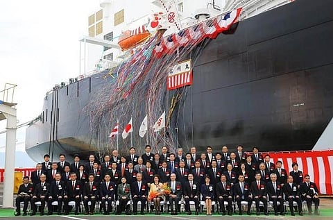 NYK Line has held a naming ceremony for a new LNG carrier being built by Kawasaki Heavy Industries and to be owned jointly with power generation provider JERA.