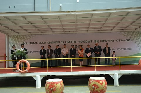 Jiangsu Hantong Ship Heavy Industry has delivered a newbuild 74,000-tonne oil tanker to Germany's Nautical Bulk Shipping.