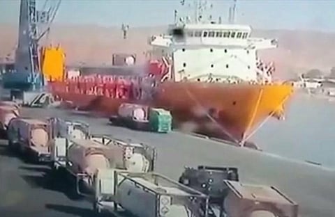 CCTV camera footage of the incident shows the cargo ship and the surrounding pier being enveloped in bright yellow gas.