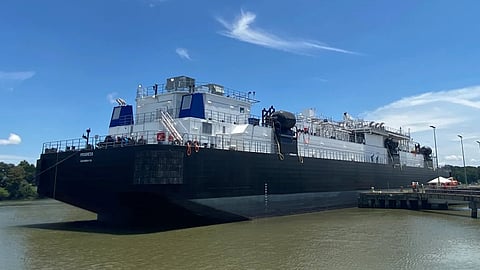 Designed by Crowley’s engineering services group, the 416-foot (127-metre) barge has a total capacity of 12,000 cubic metres (420,000 cubic feet). The vessel is equipped with systems developed by Shell and Crowley’s engineering services group to flexibly deliver LNG to various types of containment systems.