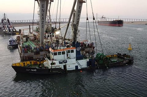 The incident occurred when the Hong Kong-flagged LPG carrier ChinaGas Legend collided with the smaller tug Fahd near the canal's 51-kilometre point at around 14:30 local time on Saturday.
