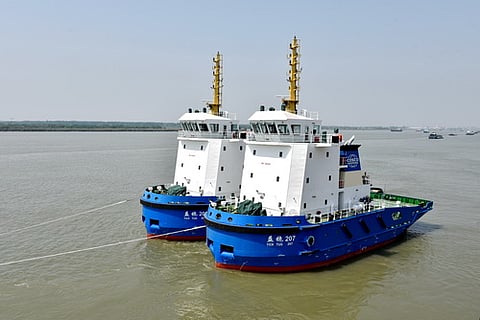 Jiangsu Zhenjiang Shipyard delivered two pushboats in a series to COSCO Shipping Bulk on Sunday, May 3.