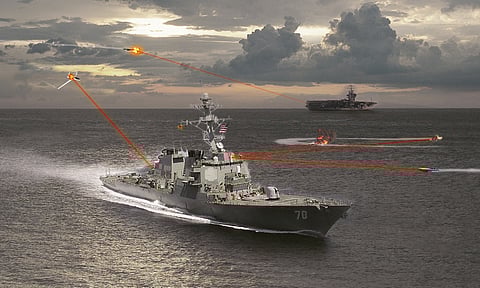 First operational use of a laser to shoot down a missile or warn off a pirate/small boat attacker